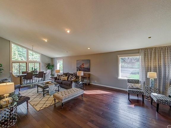 Gorgeous home with tons of VIEWS of Butte Creek Canyon and city lights! Beautiful wood deck on both lower and upper levels. Entrance level of the home features a huge great room with large picture windows and electric fireplace with stunning white mantel. Family room features a sliding glass door out to the deck with MORE VIEWS of the canyon. Updated kitchen that opens to the family room with bar seating, white cabinets with built-ins, GRANITE counter tops, walk-in pantry, trash compactor and even more views of the canyon! Off the kitchen is a half bath, laundry room and OFFICE area with a separate door that leads to this homes amazing deck. On the other side of the home you will find a second bedroom, bathroom and large master bedroom with TWO HUGE WALK-IN CLOSETS, en-suite bathroom with dual sinks and VANITY area. Lower level features a large den area perfect for a GAME ROOM with built in book casing, WET BAR area, pellet stove and a sliding glass door that leads you to the lower level deck, backyard and more STUNNING VIEWS! The lower level of the home also features 3 bedrooms and 2 more bathrooms. Additional features in this amazing home include WHOLE HOUSE FAN, central vacuum, intercom, two HVAC units, two fireplaces, FRESH PAINT and wood laminate floors throughout. Beautiful front, side and back landscaping!