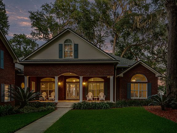 Enjoy sunrises every morning from this outstanding classic brick St.Johns riverfront home. Conveniently situated in Hibernia Plantation which with its architectural diversity and grand oaks, is one of Fleming Islands nicest neighborhoods. The home is nestled on a private lane off of a cul de sac which gives it insulation from the street which is very quiet anyway! The lot is dry and quite high above the river. The brick provides ease of maintenance and the energy bills are surprisingly low! The kitchen has beautiful cherry cabinets and granite counters as well as stainless appliances. The ceilings are high and many have crown mouldings. There are lots of windows and lots of light. The home also features a lanai and two deck areas as well as a dock, covered slip and lift.