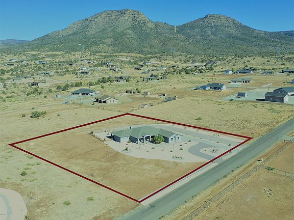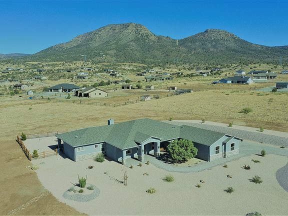 A fully custom 2848 SF home built in 2018 in the highly sought after rural community of Legend Hills located near majestic Mingus Mtn. Home sits on 2.18 Acres boasting outstanding Panoramic Unobstructed Views in both the front & rear that also includes Prescott's Granite Mountain, the Bradshaw Range, Glassford Hills & Prescott Valley's City Lights at night. All paved roads to this rural country feel home yet close to town. This Single Level Ranch Style Energy Efficient Home has many amenities to offer starting with 4 Bedrooms, 3 Full Bathrooms & 3 Car Oversize Extended Garage. Fourth Bedroom presently used as an Office. For curb appeal there's the home's Exterior River Rock Accents with the home sitting at appx 5540FT Elevation. Interior Features you will love are the Great Room SEE >