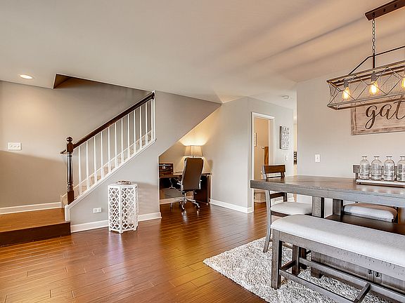 So much to love in this stunning, upgraded townhouse with a pond view in Patriot Square. Brand new hardwood flooring installed throughout the main level. Fresh paint throughout the whole house. Kitchen has been updated with painted cabinets and backsplash, as well as a new microwave. New light fixtures and new AC. Garage door/opener and water heater only two years old. Two master suites on the second floor, as well as convenient second floor laundry. The finished look-out lower level has garage access and can be used as an office, den or third bedroom. Walking distance to downtown Plainfield and the Pace bus.