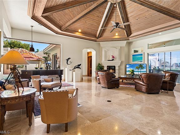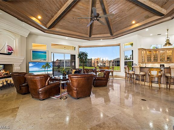 One of a kind courtyard estate home in Gulf Harbour Yacht & Country Club. Golf membership available for separate purchase. Walk thru the Pecky Cypress doors and enter your outdoor paradise. 6BR, 6 Full baths & 2 half baths, 6593 sqft living space, 4 car garage, and golf cart garage. New roof in 2022. 35KW generator. Expansive pavered pool area with swim up bar, spa, fireplace, & teak ceiling. Outdoor kitchen offers granite counters, icemaker, fridge, & Viking BBQ. Second floor bonus suite with kitchenette, bath, steam room and balcony overlooking courtyard. First floor sauna room. Etched glass doors lead into impressive living space with 12ft zero corner doors. Chef’s kitchen is a dream with custom wood cabinetry, granite counters, double oven, Viking stovetop w/ dual griddles, warming drawer, Subzero fridge, walk-in pantry. Butler pantry with access to formal dining area. Granite countertop bar with icemaker, sink, & fridge. Main living space features unique octagon pecky cypress ceiling. Office with views of 4th fairway. All doors are mahogany. 900 bottle wine cellar. 4 ensuite bedrooms. Be sure to watch the immersive walk-thru video!