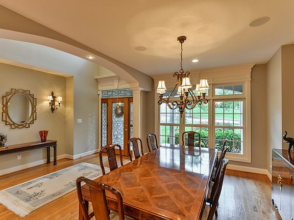 This elegant Landis Lakes walkout home was custom built in 2003 and offers upscale amenities and beautiful finishes throughout the property. This home offers an exquisite, open floor plan for today's lifestyle. You will love entertaining in the gorgeous eat-in kitchen that includes beautiful custom cabinetry, an oversized center island, five burner gas cooktop and oven, an Advantium Oven/Microwave, designer granite counter tops and opens to a cozy hearth room that walks out to a screened porch. The kitchen transitions to the adjoining great room featuring vaulted ceilings, gorgeous windows and custom molding in every direction. The large primary suite includes a beautiful en suite primary bathroom with a jetted tub, gorgeous cabinetry and countertops and a custom designed closet. Completing the main level is a formal dining room, powder room and a conveniently located laundry room with a sink and hanging rack. The second floor includes three large bedrooms and two full bathrooms and great closet space. The walkout lower level has been finished with a kitchenette and bar area, a media/family room, a billiard area, two bedrooms/office area, a full bathroom and plenty of unfinished space for storage. This home also features beautiful hardwood floors, Central Vac, lawn irrigation, a security system, 9 foot ceilings on the first floor and 11 foot ceilings in the kitchen and breakfast nook, maintenance free Trex decking, natural gas hookup for an outdoor grill, a 3 car garage with convenient basement access, extra insulation in the attic and a covered porch. Offering all of the pristine elements and amenities that you could want in a fine home with a location that is incomparable.