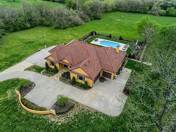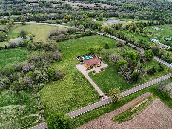 Gorgeous custom built Rev 1.5 story home situated on 6 acres! Arched ways & high ceilings entering the LR and lge dining rm adjacent to foyer. Chef's kit w/60" gas range, double ovens & w/in pantry. Kit also has a breakfast nook, large island & hearth rm w/FP. Mstr suite with w/in closet & outside access to a covered porch/sitting area overlooking pool. Enjoy temp controlled pool, covered porch & patio w/wood burning FP. Family rm, game rm, wine cellar & full-service bar on the LL! Perfect home for entertaining!