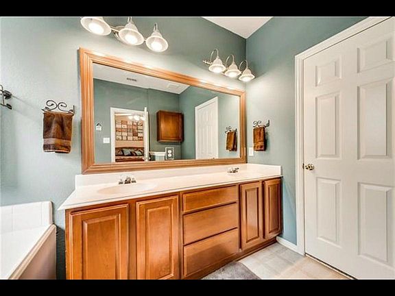 Well maintained home with nice size backyard. 3-4 bedrooms (w/suite off of master bedroom) and 2 bathrooms. Master suite has a bonus room that can be a nursery, exercise room, office or 4th bedroom. Fireplace. Plantation shutters! Community ponds and community pool in neighborhood. Frisco ISD schools. Formal dining room. Large kitchen island. Separate tub and shower in master bath!