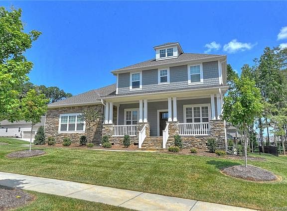 Stone accented Craftsman inspired home shines with beautiful hardwood floors, bright open floor plan, designer lighting and a main level master retreat! A study with French doors and elegant dining room flank the welcoming foyer. Gorgeous chef's kitchen with granite & stainless steel appliances flows into the spacious great room. Upstairs you'll find 3 additional bedrooms, 2 full baths and a raised bonus/media room. A covered deck overlooks the fenced back yard Located across the street from the community park, this corner lot features a side load 2-car garage. Minutes to shopping, dining and highway access!