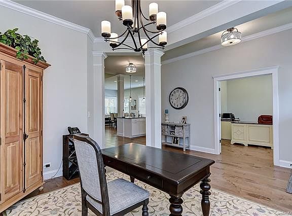 Stone accented Craftsman inspired home shines with beautiful hardwood floors, bright open floor plan, designer lighting and a main level master retreat! A study with French doors and elegant dining room flank the welcoming foyer. Gorgeous chef's kitchen with granite & stainless steel appliances flows into the spacious great room. Upstairs you'll find 3 additional bedrooms, 2 full baths and a raised bonus/media room. A covered deck overlooks the fenced back yard Located across the street from the community park, this corner lot features a side load 2-car garage. Minutes to shopping, dining and highway access!