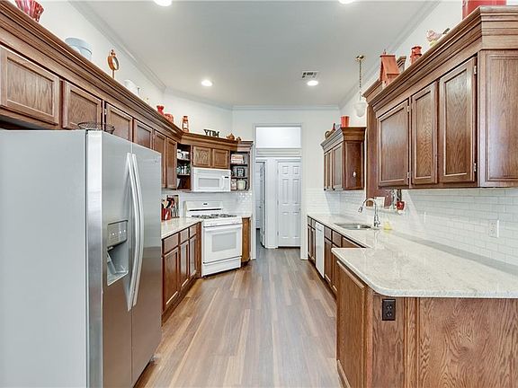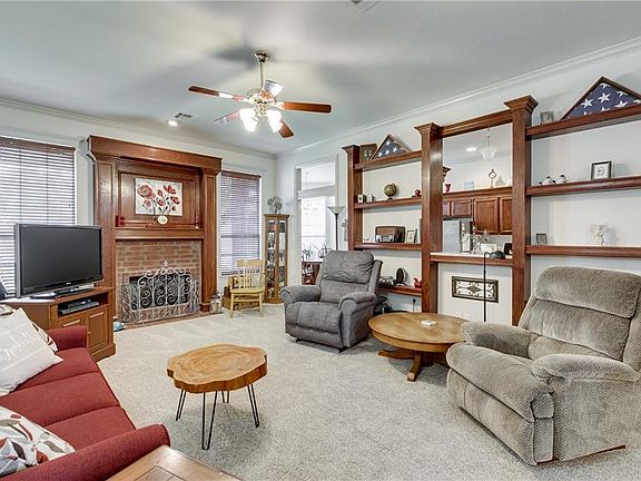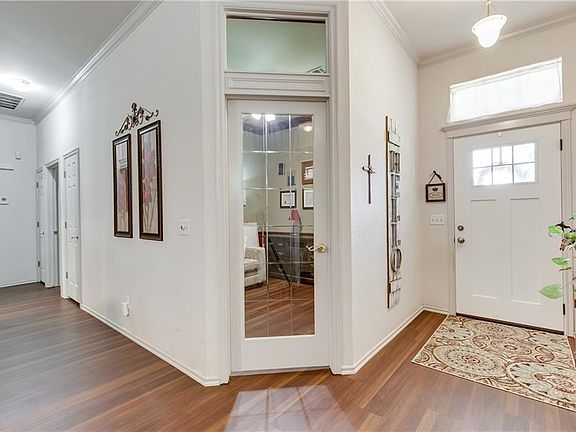 Beautifully updated Edmond home! Great curb appeal w/ covered front porch. This open floor plan home offers 10' ceilings, crown molding, & new wood-like flooring. Kitchen has been updated w/new granite counters, flooring & tile backsplash. The master suite has a vaulted ceiling, new floors, & access to a separate patio. The master bath offers a dbl vanity w/ new granite, makeup/sitting area, jetted tub, new shower, & large wrap around closet. The guest bath has been updated w/ a new granite on the large vanity w/ makeup/sitting area, new flooring & new shower. The secondary bedrooms & living room have newer carpet & second living/office has new vinyl wood flooring. 2nd living is study. This small 36 resident community offers a lake for fishing, a walking trail & community pool. Sellers updated some light fixtures, all toilets w/ taller models & some landscaping. Ample amount of flooring in attic. 2014 New HVAC, hot water tank, dishwasher. Close to Turnpike & Broadway.