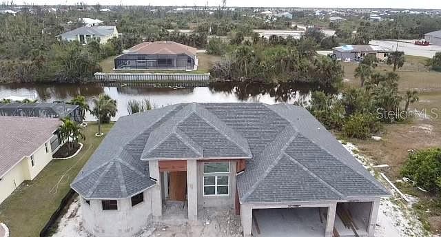 Under Construction. PRICE REDUCTION! Why wait two years for a brand new home when this home will be ready October of 2023. This beautiful Custom Home offers three bedrooms, two bathrooms, a den/office and a three car garage. As you enter through the upgraded double doors you will be wowed by the high ceilings and zero degree sliders giving you an unobstructed view over the pool and canal. The kitchen and both bathrooms come with granite counter tops and soft closed cabinet drawers. All of the doors and windows are Hurricane LOW E Impact glass, so there is no need for hurricane shutters. The lanai area gives you ample space to enjoy relaxing around the screened in pool. The three car garage gives you a little extra room for storage. You still have time to select some of your interior features, so contact me now, so you can personalize your New Custom Home. Enjoy boating & fishing right from your very own backyard from this waterfront property which gives you access to the Charlotte Harbor and Gulf of Mexico. (Projected Floor plan in attachments)