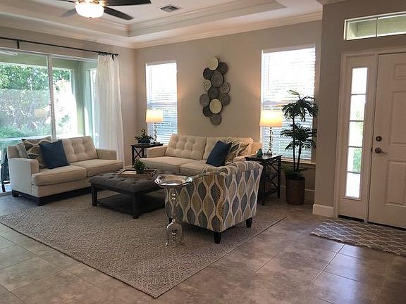 Short term fully furnished rental Available April 29 (start) to mid-Sept., 2023 (end). (Booked Jan/Feb/March 2023). No hurricane damage. Newer construction, first floor ranch style Villa HOME in desirable Lucaya gated community. 1,500 square feet. Beautifully decorated with great attention to detail and high end furnishings. 2 bedrooms, den, lanai, 2 full baths and one half bath. Large Master ensuite with walk in closet. Guest ensuite. Den with sofa sleeper and french doors. Ceiling fans in all rooms. Attached 2 car Garage (1 space available). Laundry room. 3 TVs. Relax in the screened in lanai that overlooks private preserve. Stainless appliances. Granite counters. Lush landscaping. End unit with loads of natural light. Open spacious floor plan. Fully stocked kitchen and plenty of linens - just bring your suitcase and swimsuit! 2 Pools only steps away. Gym. Clubhouse. Minutes to beach, shopping, bike paths and parks. Bikes, beach chairs and grill all available for your use. Short term rental. Not an annual lease. Minimum 2 month rental. Available from April 29, 2023 through mid-September, 2023. Start date/end date negotiable (mid-month start/end acceptable). Association requires application and background check. Includes ALL utilities, wifi and cable. Rent does not include taxes and cleaning fee. No pets.