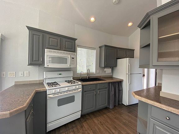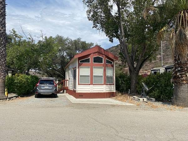 Absolutely beautiful manufactured home in Pio Pico resort! This 1 bed, 1 bath shows pride of ownership throughout. Living room has large widows to enjoy the view. Dining area features a wrap around stunning built-in hutch. Kitchen offers a breakfast bar, microwave over the stove, stunning concrete sink and refrigerator. Bathroom features a tub/shower combo. Bedroom is gorgeous and functional; mirrored closet doors, built-in desk, drawers and built-in cabinets. Linen closet in hall, beautiful and durable vinyl laminate flooring. Dual pane windows, hardi-plank (cement board) siding, shingle roof, 2 storage sheds. Ecowater Systems whole house water softer. Perfect setting with no neighbors on back or front side! This is very inexpensive living; although, you will feel like you live in an expensive home. Yearly membership fee is $615. $6,576 yearly lot fee includes utilities and must be paid upfront for the year (comes out to $548 a month). You can live here only 210 days per year because Pio Pico is a campground. 157000P007014A.