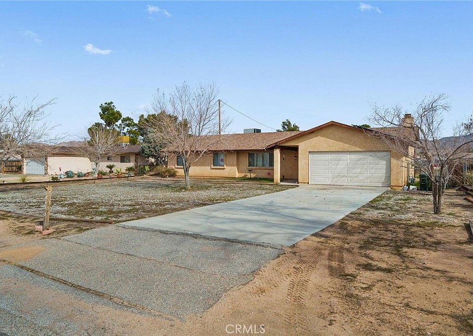 Huge Price Drop! This is your opportunity to own this charming and spacious home on an oversized lot that is almost half an acre. Entering this home with brand new carpeting and laminate flooring throughout, you walk into the spacious living room to the left and a secluded den with a beautiful stone-faced fireplace to your right. As you continue forward entering a large eating area that adjoins the well-designed kitchen with bar seating and plenty of counter space. The attached garage is just steps away from the kitchen, making those trips from the car with groceries or loads of laundry a breeze. Walking down the hall you'll find a full guest bathroom and two guest bedrooms with brand new carpeting as well. The spacious master bedroom boasts an en-suite bathroom with double mirrors and double vessel sinks and a private shower. The exterior of the home features water-conserving landscaping and plenty of room to make the yard into your dream home. This is a great opportunity to own a home with Solar Panels in a great neighborhood in Apple Valley that is close to shopping and is on a large lot with tons of potential.