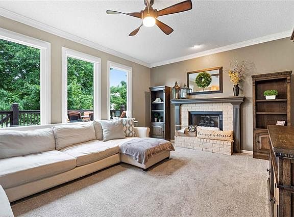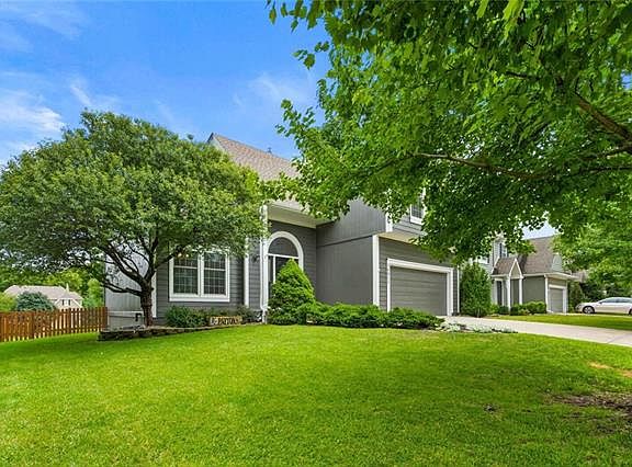 Light-filled floor plan, fully finished lower level, Blue Valley Schools, and an absolutely breathtaking yard and outdoor living-this is definitely the one you've been waiting for! This home features upgrades like a sprinkler system, stamped concrete patio, fresh exterior paint, updated fixtures, new carpet in dining rm, many kitchen upgrades, and more! The lower level features a huge living area with wet bar, half bath, and a bonus room for office, workout, or play room! Spacious master has TWO walk-in closets!