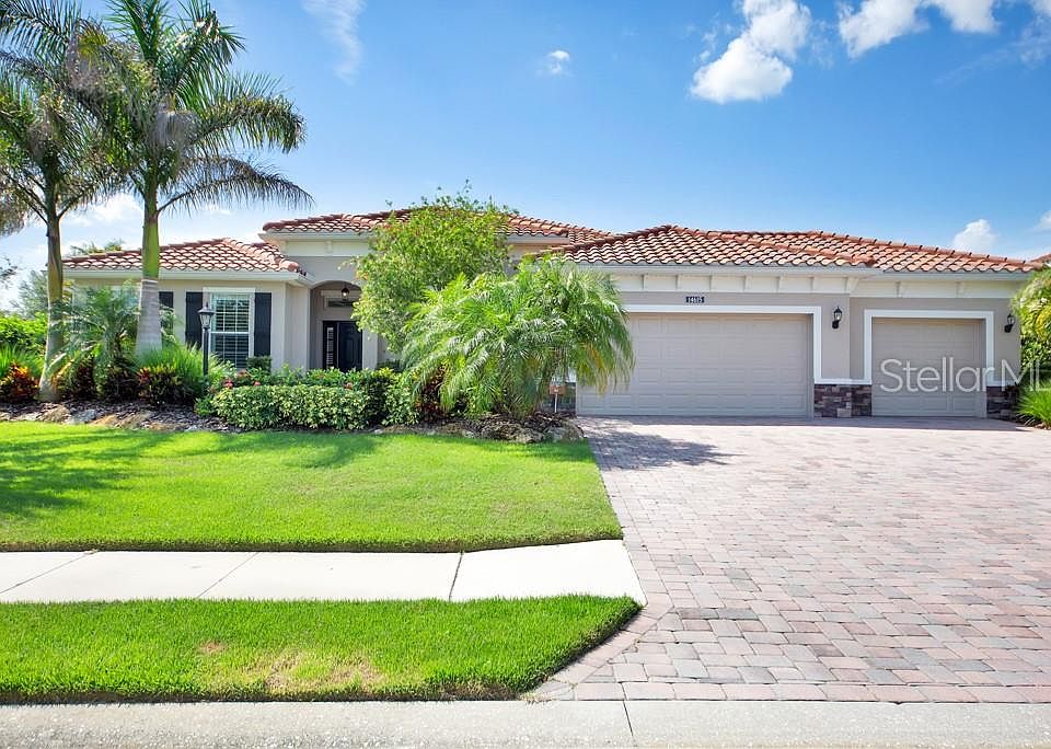 Lakewood Ranch Amazing Greenbrook home with a colossal paver lanai. Great for basketball, corn hole or tossing a baseball/football. WOW, what a fabulous oversized Pebble Tec saltwater gas pool and spa! 3 covered areas on the lanai. 2 TV hookups. Solar lights on screened cage. 3 car garage. Lush landscaping with a stellar elevation. Grand and open entryway. Tile and wood flooring. Spacious dining and family rooms for entertaining. Crown moldings. Hickory wood floors in owner's retreat and all bedrooms. Plantation shutters. Tankless water heater 2013. Hurricane shutters. Wood-burning fire pit on lanai. Gourmet granite kitchen. Custom rich cabinets with up lighting, tile backsplash, eat-in counter space at bar with 3 pendant lights. Stainless appliances, 4 burner gas cooktop, dual sink, closet pantry, large breakfast area with sliders off to lanai. Lovely owner's retreat with a seating area. Custom built-ins in all bedroom closets. Beautiful bath with dual sinks, brush nickel hardware, granite countertop, walk-in shower, garden tub, private water closet and a huge walk-in closet! Crown Molding everywhere, Additional Lighting, Fans, New Flooring, Custom Garage Floor, Custom Closets, Blinds, Great yard for practicing any type of sports. Close to A-Rated schools, UTC Mall, dining, soccer fields.