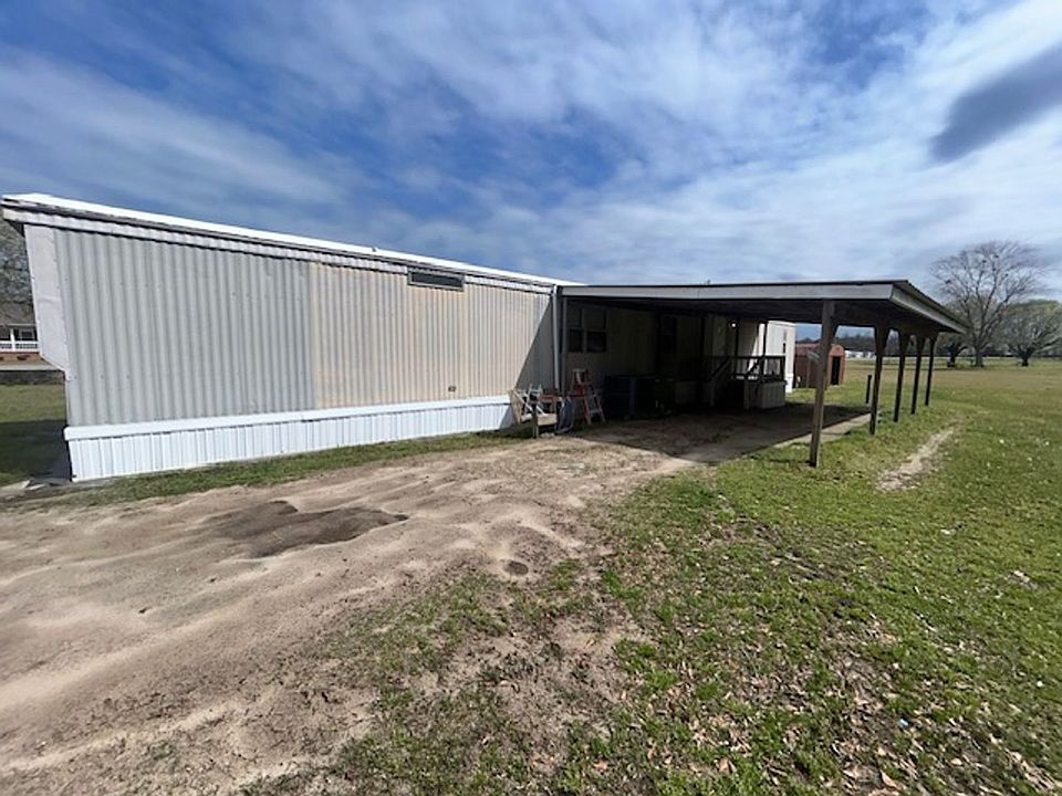 Single wide home with 2 bedroom 2 bath with stove, fridge, microwave, w/d hookup, central ac/heat, and overhead carport attached.