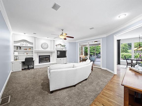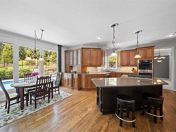 Move into your dream home just in time for summer. This stunning home boasts a gorgeous backyard oasis with a sparkling pool—perfect for enjoying those sunny days. Pride of ownership shines throughout this residence, featuring a spacious floor plan with beautiful wood flooring from the entry into the kitchen. Gather family and friends around the huge island or unwind in the relaxing four-season room overlooking the beautiful in-ground pool and fenced yard. The kitchen features a brand new gas cooktop and double oven. Heated tile flooring and a stone fireplace in the four season room makes this your favorite spot all year long. The focal point of the master bedroom is a gorgeous fireplace. The updated master bath suite features heated tile flooring, custom cabinetry, gorgeous chandelier, a free standing oversized soaker tub that has ample room for two. The walk-in closet is a 18 feet long! All bedrooms have a bath attached and a junior master suite offers a private bath. All rooms feature large closets for storage.Large laundry room is on the bedroom level. Don't miss the updated 1/2 bath offering Quartz countertops and floating custom cabinetry. The finished walkout basement includes a bar, rec room, office/non conforming 5th bedroom, full bath, and plenty of storage space. Enjoy easy access to the pool from both the basement and the four-season room. Located in the prestigious Saddlebrooke neighborhood, this community offers a warm and inviting atmosphere with holiday gatherings, parades, a neighborhood pool, and year-round events such as food trucks and driveway gatherings with neighbors. Just minutes from Lake Quivira Country club where you can join to golf, or become a social member. Convenient highway access ensures an easy commute to the airport or downtown.