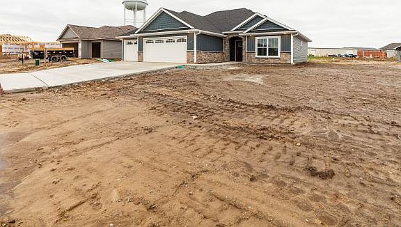 This open concept floor plan features a private office, split bedroom design, large windows in the great room and a 3rd car garage
