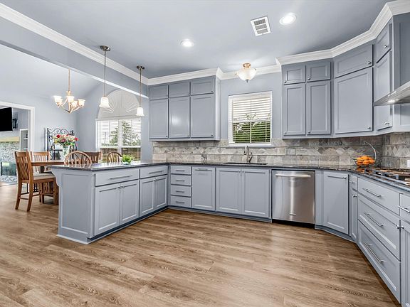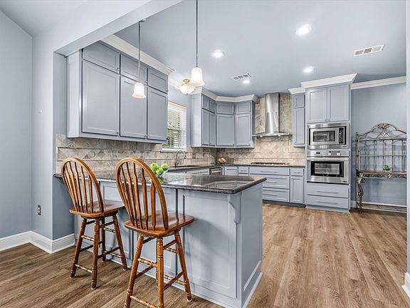 Beautiful 4 bedroom, 3 bath home with a stocked pond, outdoor kitchen, workshop, and exercise room on 2.87 acres. You will love the updates and addition of this home. Upon entering, you notice the beautiful, durable, vinyl wide plank wood flooring throughout the living, dining and kitchen area. The renovated kitchen offers granite countertops, travertine backsplash, stainless appliances, DCS 5 burner gas cooktop with stainless hood vent, DCS wall oven, breakfast bar accented by 2 pendant lights and large pantry all opening up to the formal dining area. The formal living area has a cozy, wood burning fireplace with stone surround, while the family room is spacious with both offering vinyl wood flooring. The primary suite is spacious, offers vinyl wood flooring, 2 walk-in closets and has a renovated bathroom. The primary bath has a gorgeous, oversized shower, dual vanities, granite countertops, framed mirrors and upgraded flooring. 2 additional bedrooms and a full bath are located in the same wing of the home as the primary suite. The family room, a large laundry room, the 4th bedroom (oversized and currently used as an office) and full bath are located off of the kitchen. This floorplan is great for guest to have their own area of the home when visiting or for a home office. Outside you will find a 22x15 covered outdoor kitchen/entertaining area complete with granite countertops and plenty of serving space. Behind the carport is a large workshop with electricity and an insulated gym area. Call today for details!