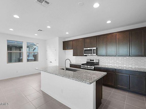 New Construction - Ready Now! Built by America's Most Trusted Homebuilder. Welcome to the CC-RM2 at 14617 W Sand Hills Road in Avila at Rancho Mercado! A home that feels as beautiful as it looks. A charming wraparound porch sets the tone, leading into an airy open-concept space where the great room, dining area, and kitchen flow together. A powder room and garage entry add convenience on the main level. Upstairs, two secondary bedrooms share a full bath with dual sinks, while the laundry room is thoughtfully placed near all bedrooms. Your private retreat awaits in the primary suite, complete with a spa-inspired bath featuring double vanities, a walk-in shower, and a spacious closet. MLS#6942053 At Avila at Rancho Mercado, life is all about location and lifestyle. Enjoy lush parks, a sparkling pool, and courts for basketball and volleyballall just steps from home. With Surprise Towne Center nearby and easy access to Loop 303, everything you need is within reach. This house comes with a MOVE-IN PACKAGE which includes: Appliance Package (refrigerator/washer/dryer), 1 year of HOA dues ($2088) and 2" faux wood blinds! Additional Highlights Include: Upgraded shower at primary bath.