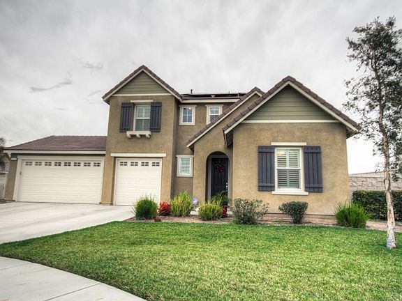 Tired of paying storage fees for your large toys? Looking for room to have your RV, boat, dirt bikes and still have room for the kids to run around and be kids? Or are you looking for a home perfect for entertaining your guests outdoors and indoors? This home has it all. The property is located on a cul-de-sac and features a lot that is nearly 14,000 sqft. Upon entering into your nearly 2500 sqft home, that shows like a model, you are welcomed with an open floor plan. To your right there is a full bathroom and bedroom downstairs. The formal dinning room is perfect for your family Thanksgiving dinner or use it as a game room and play some pool with your guests. The great room features the living room, dinning room and the kitchen complete with island. You are able to continue cooking and hosting your party while still being able to hold a conversation with your guests in the living room. Perfect for the large holiday gatherings. When the party moves to the backyard, don't worry there is plenty of room in the backyard for all the trimmings of a great party. Want a bounce house?.. sure no problem there's room for that. Want a playground, pool and covered patio?.... there's room for that. Upstairs you can relax and escape from the party, if you so wish, or when the party is over and relax with a bubble bath in your large master bathroom. This home has so many features too many to list. The home is also equipped with SOLAR so enjoy a lower electric bill!