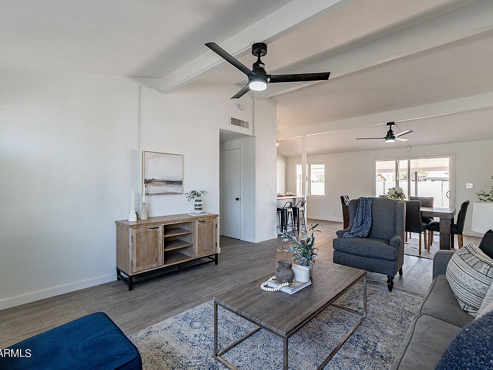 This stunningly remodeled 4-bedroom, 2-bathroom home, complete with a 3-car carport in the rear, offers a captivating great room floor plan that effortlessly fosters a cozy and inviting atmosphere. Recently undergoing a transformative makeover, this property now boasts brand-new flooring throughout, along with freshly painted interiors and exteriors, radiating a sense of freshness and modernity. Enhanced light fixtures illuminate the space, adding to the overall appeal. Each bathroom has been meticulously updated to ensure a contemporary and revitalized look, elevating the home's aesthetic appeal. The kitchen serves as a culinary haven, featuring top-of-the-line amenities such as stainless-steel appliances, freshly painted cabinets, and luxurious quartz countertops.(see more) Notably, this property is free from HOA fees, offering a rare advantage in the area. Situated just a block away from Acoma Park, and in close proximity to ASU West, Glendale Community College, Banner Medical Center, and major interstates 17 & 10.