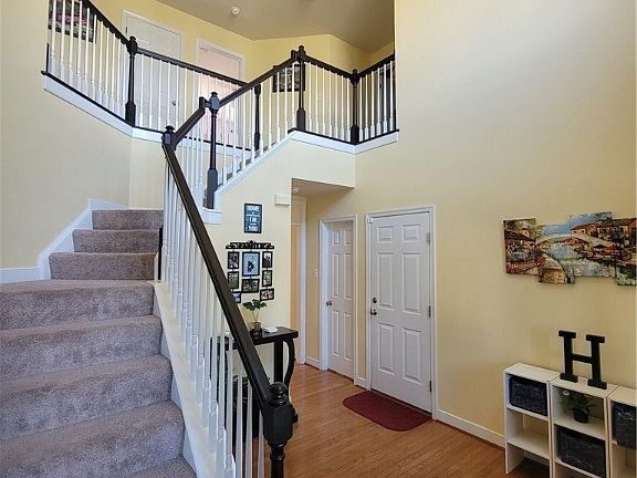 - Description: Hardwood floor, stairs, garage access, coat closet
