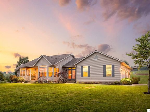 Remarkable ranch with open floor plan sitting on 2+ scenic acres. Home has 3BD, 3.5BA, and large living room with bay windows, & a double-sided fireplace. Grand gourmet kitchen features a center island, 2 deep sinks, granite counter tops, 6 burner cooktops with vented hood, & Schrocks custom cherry cabinets. Owner's suite includes a fireplace, a grand private bathroom & walk in closet. Entry level laundry allows for one-level living. The finished lower-level offers additional space, perfect for entertaining. Heated 3.5-car garage with insulated 8ft doors, plenty of storage and hot/cold water taps with convenient access to the kitchen and a mudroom/bathroom combo. Property includes fenced garden, covered patios, 3 firepits and backup generator. Many more features to see. Minutes from Knox Lake for fishing and other outdoor adventures. Call today!