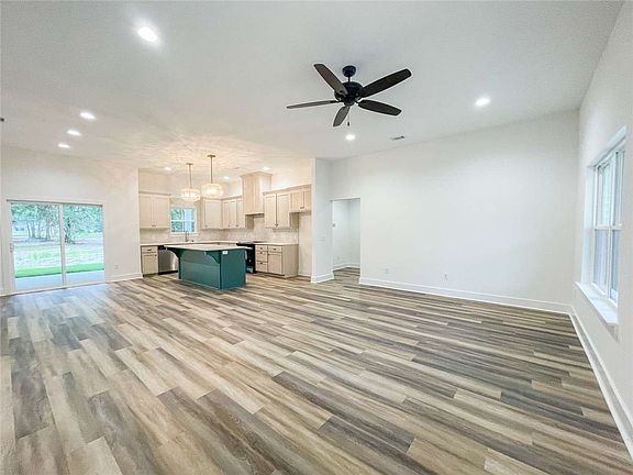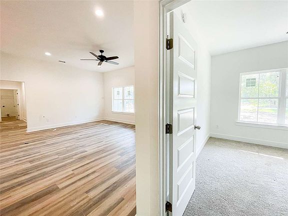 Timmons plan by Dryden Enterprises in coastal Georgia! Enjoy a quiet, rural setting within minutes of I-95- quick commutes to Savannah, Brunswick, Hinesville & Ft. Stewart! 3 bedroom, 2.5 bath home with spacious front & back porches! Open concept living space upon entry! Family room adjacent to entryway with large window looking out to the front porch. Luxurious features in the kitchen include quartz counters, two-tone cabinetry, designer lighting & more! From the island, view the dining area & access out onto the back porch! Leaving the family room step into the hall with access to walk-in pantry with custom wood shelving, laundry with cabinetry & half bath. Within the master suite, find a walk-in closet with wood shelving, a vaulted ceiling & private bath. The private bath includes tile flooring & shower, dual vanity with quartz counter & separate soaking tub. Two additional bedrooms & hall bath also with tile flooring located on opposite side of home from the master suite!