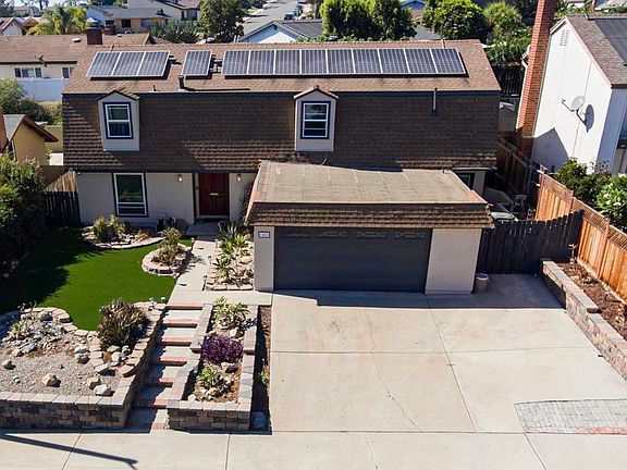 Discover your dream home with this stunning 5-bedroom property, featuring a fully remodeled kitchen adorned with elegant herringbone tile flooring and Samsung Bespoke appliances and quartz counter tops with waterfall edges. Enjoy an abundance of natural light with new Anderson windows and sliding doors in the main living area and new windows throughout. The house has been freshly painted inside and out. The large upstairs bedroom is versatile enough to serve as a playroom or guest suite, while the convenient upstairs laundry chute adds a practical touch. The family room is designed for gatherings, with ample space to host a pool table and enjoy quality time together. A separate dining area completes the layout, making it ideal for family meals and celebrations. Plus, the home benefits from PAID solar, ensuring energy efficiency. Over 40 panels lowering your electric bill net to ZERO. The inviting pool and spacious outdoor yard create the perfect setting for entertaining friends or simply unwinding in style. Outside boast synthetic turf, and fruit trees include apple, mango, peach, orange, avocado and lemon. No HOA. No MelloRoos. Don’t miss this perfect blend of comfort and modern living!