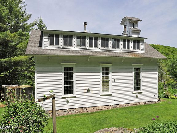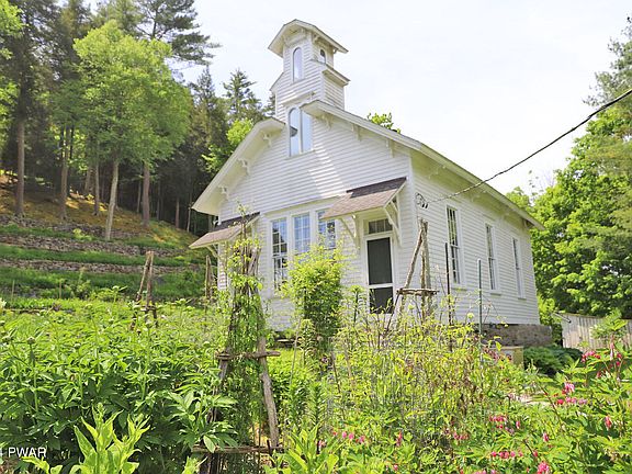 Loft-style living in the country! This renovated 1851 schoolhouse offers a comfortable, creative lifestyle in a bucolic setting close to Skinners Falls on the Delaware River at Milanville, PA. Lush gardens, fruit trees and koi ponds nestle among the gorgeous, extensive stonework and landscaping. A 36x24 two-story studio accommodates working artists. The schoolhouse was renovated by local artisans, and it has large rooms, high ceilings, and big windows for a spacious, airy feel. First floor has kitchen/dining area, bathroom, and living room. Second floor is a full-length loft with a full bath and spray-foam insulation. The studio was built in 2000. It has a full basement and garage. Like the schoolhouse, it features open spaces, insulation, and propane heat. The property is completely deer-fenced, so you can enjoy the mature plantings without worry. Abundant vegetation, flowing fresh water, and multiple outbuildings let you immerse in the rich landscape of the Upper Delaware Catskills. Easy access to Narrowsburg and Callicoon. 2 hours NYC.