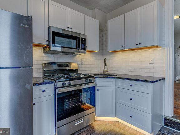 Come check out this move-in ready home located in the Northeast section of Reading. 4 private bedrooms, 1 full bath, spacious living room and formal dining room with charming built-in corner cabinet, remodeled cozy and bright kitchen with under cabinet puck lighting, stainless steel appliances including a refrigerator and gas stove, granite countertops, and tile backsplash. Refinished hardwood floors on the main level, new carpeting in the bedrooms on the upper levels, and a freshly painted bathroom. Fenced-in backyard with one car off-street parking. Seller is using up oil left in the tank then converting it to economical gas heat. Perfect starter home or investment property. Great location close to school, shops, and public transportation.