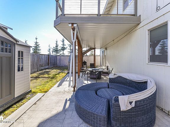 Enjoy this well maintained south side home located in a corner lot conveniently just off the Seward Hwy.Over $30K in outdoor living space upgrades completed in 2014. Perfect for summer BBQ's and large gatherings! Upgrades include HUGE second-story 312 Sq Ft TREX deck with cable railings, Raintight Underdeck System covering a GIANT concrete patio. All enclosed in a fully-fenced yard. Spacious 4 bedroom, 2 bath home. 2 bedrooms upstairs with walk in closets.2 bedrooms & family room downstairs with access to backyard patio. Vaulted ceilings in second floor main level. Open concept floor plan with dining room access to second-story deck. Other upgrades include: Upstairs bath, master closet and laundry room organizers, Racedeck garage flooring, new 10x8 storage shed, and new stainless appliances with Flex-Duo Double Oven. A definite MUST-SEE!