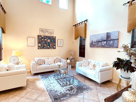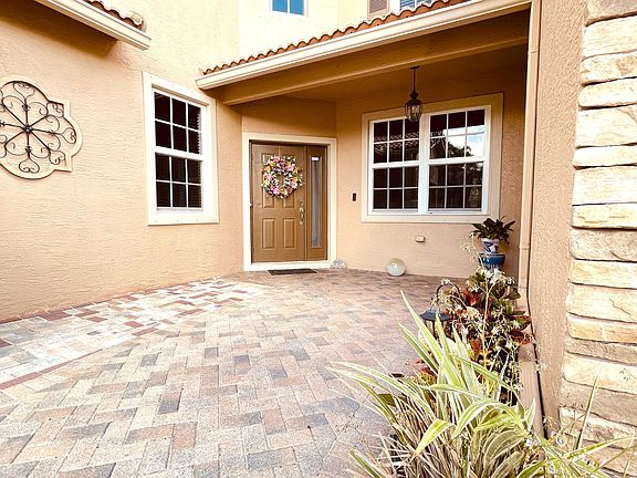 This wonderful 5 bedroom, 3 bath home with private pool and 3 car garage sits on one of the largest lots in the desirable community of Stonehaven. The cook's kitchen features LG stainless steel SMART appliances, Corian countertops with inlays. Among the many designer finishes are diagonal Porcelain flooring downstairs, iron railings, real wood upstairs and Hunter Douglas blinds. Impact glass and accordion hurricane shutters for storm protection. Other SMART Home features include programmable garage doors (to close if left open), Nest Thermostat, Ring Doorbell, Smart light switches, and ADT Alarm Keypads at Master Bedroom, front door, and garage. New water heater in 2023. The gorgeous, oversized backyard features a screened-in salt chlorinated pool with heater, outdoor sound system, Mexican tile throughout the patio and pool deck, outdoor grill, all perfect for outdoor entertaining.