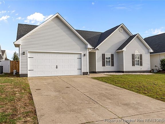 Beautifully maintained 4-bedroom, 2-bath home, ideally located near Fort Bragg! Step inside to an inviting open floor plan featuring vaulted ceilings, luxury wood-look flooring, and a cozy fireplace. The modern kitchen offers granite countertops, stainless steel appliances, white cabinetry, and an adjoining dining area—perfect for entertaining or everyday living. The spacious owner’s suite includes tray ceilings, plush carpeting, a walk-in closet, and a private bath with double vanities, soaking tub, and separate shower. Two additional bedrooms and a full guest bath downstairs provide comfort and flexibility. Upstairs carpeted 4th bedroom could also serve as an ideal media space, playroom, or office. Enjoy the large fenced backyard with patio, great for outdoor dining or relaxation. Additional highlights include a separate laundry area and two-car garage. New HVAC in 2022, roof replacement in 2023. Conveniently located minutes from shopping, dining, and Fort Bragg—this move-in ready home offers modern finishes, thoughtful design, and timeless appeal. Schedule your showing today!