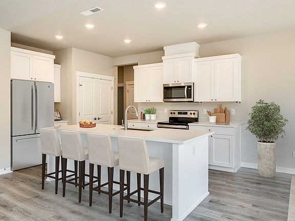 Huge incentive available on this home with a 3-2-1 Buydown providing a hugely discounted interest rate!! Restrictions apply, see site agent for details. Last opportunity to purchase your home in Campanella Estates master planned community. Just Imagine watching the sun set from the covered outdoor living space in this beautiful single story Harrison floor plan, presented by award winning builder Pahlisch Homes. This homes quality & finishes will be the envy of family & friends. This 2,072 sq. ft. single level home will delight all the senses with the natural light in its beautiful upgraded kitchen, dining and great room. Relax in the gracious primary suite with large walk-in closet, tiled walk-in shower and soaking tub. Plenty of room with 3 additional bedrooms. Enjoy ample space in the 3 car garage. Numerous smart home features are included to complete this home. Once you see all of the detail this home has to offer: from the stainless steel appliances and quartz countertops to the coffered ceilings and fireplace, you'll find it is simply fabulous. This areas beautiful and peaceful surroundings with park & walking trails will carry over into the everyday way of living that continues into your home.