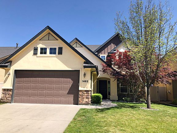 Beautiful 3 bedroom/2.5 bath, 1,800+ sq.ft., single family house nestled in the lovely neighborhood of Cobblestone Crossing, Meridian. Opulent entry, study with glass doors. Granite counter tops in kitchen and custom cabinets, stainless steel appliances and pantry. Lush backyard with patio. Laundry room with new washer/dryer. Pitched ceiling in master bedroom with walk-in closet, double sink and soaking tub. Attached 3-car garage with lots of extra storage, 2 car driveway and extra parking on street island. Established neighborhood and tree lined streets, parks and community pool. Close distance to top schools, the new Costco, dining and shopping. Owner pays for water, trash/recycling/sewer and landscape service. Renter responsible for gas and electric, internet/cable, light bulb and battery replacements. Security deposit due at signing, first month's rent due at move in. No smoking/vaping. Small pet under 25 lbs allowed.