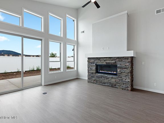 Welcome to this wonderful, newer custom home in Coeur d'Alene! You'll love the open concept floor plan with high vaulted ceilings, offering a spacious and inviting feel. This home boasts no steps, providing easy accessibility. The home features a great front porch and rear patio areas, perfect for relaxing and entertaining. With 1622 square feet, this home offers 2 bedrooms plus a flex room and 2 baths, providing ample space for comfortable living. Located in a very convenient location, this home is fully landscaped with a sprinkler system and rear yard fencing, offering both beauty and privacy. Don't miss out on this fantastic opportunity to own a custom home in Coeur d'Alene.