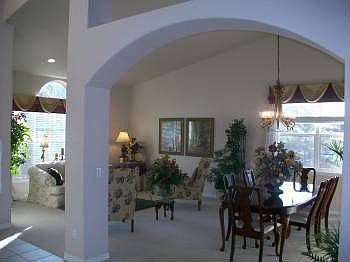 An elegant curved staircase, decorative arches, and dramatic vaulted ceilings immediately inspire you upon entering this exquisite home. Follow the ceramic tile flooring past the separate formal living and dining rooms to the two-story family room with a relaxing gas fireplace. The gourmet kitchen features a large center island, Corian countertops, a built-in pantry, and a breakfast nook with a walkout to the covered deck. Enjoy spectacular Pikes Peak and Air Force Academy