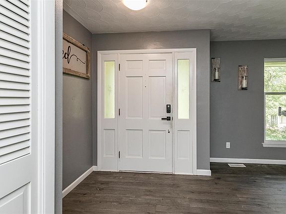This 3 bedroom, 2 bath home on 2 acres gives you the quietness of the country and the convenience of town. Inside features a gorgeous living room with a wood burning fireplace and built in shelving, a formal dining room with a bay window, and freshly painted kitchen cabinets with new backsplash. The master bedroom has a full bath connected as well as two closets and built-in shelving and drawers. One of the two other bedrooms has a bay window as well with built in storage underneath the window seat. The partially finished basement has a kitchenette and fourth bedroom. The home has a recently installed geothermal HVAC. The large backyard features a nice deck and outbuilding as well! This peaceful two acres provides the perfect place to get away from it all without giving up the convenience of town just a few miles away.
