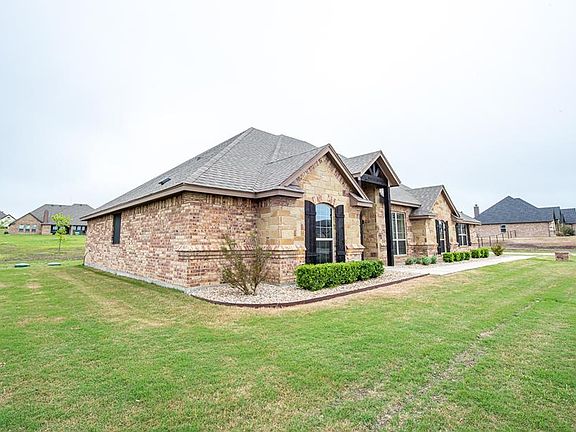 Tired of the noise and construction...welcome to Spring Ranch, the newly COMPLETED community! 1 plus acre lots complete this extraordinary community just north of Godley. Quick access to 377 or the Chisholm Trail allows country living with easy access to the city. The home sits on a serene corner lot with south facing newly installed pergola for a relaxing evening or morning coffee without direct sun. Warm up with outside fireplace as well. With 4 bedrooms and 3 full bathrooms this lovely home has it all. The layout of this home is open and inviting w-split bedroom arrangement for privacy. Homeowner has created a mud closet area with shiplap walls-stunning and useful! Garage offers an extra nook for a workbench