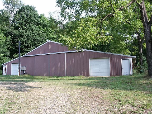 Great country location on 11 m/l acres of rolling wooded land with abundant wildlife to enjoy from spacious wrap-around decks. Replacement windows. The addition includes a 12 x 16 master bath(handicap accessible) w/ laundry room, hot tub, & 21 x 23 master bedroom that could be used as a family room.Sliders on both sides of room allow a gorgeous view of the countryside. 80 x 56 pole building w/3 phase electric, separately metered, 6 inch reinforced concrete floor-insulated & heated w/oil furnace & wood stove. great for business or storage.