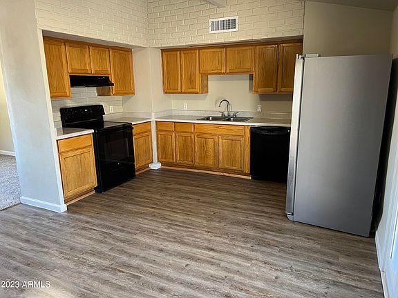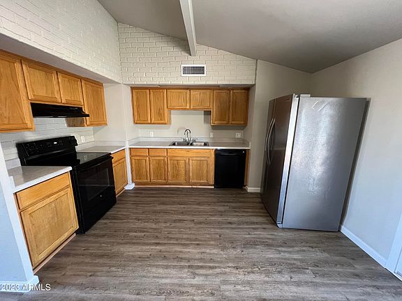 This home challenges comparison!! With completely owned solar panels, receive a low to no electric bill. Located in a beautiful neighborhood near Acoma park. This updated 3 bed 2 bath home has plenty to offer. Very clean, with Fresh paint in and out, open flowing floor plan with all new carpet and luxury vinyl plank flooring. Vaulted Ceilings, ample Kitchen with large stainless steel fridge. Extensive covered patio with a spacious backyard and large storage shed. 2 car carport in the back, and no HOA. All located near shopping, medical facilities, and restaurants and close to ASU west. Don't miss out on this great home, your clients will love it- Call before its gone