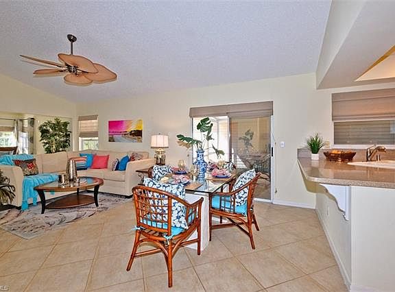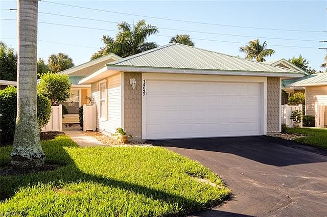Key West style cottage all on one floor...lives like a single family home..2 car garage...nobody above you...nobody below you....Condo living at it's best! Come see this adorable 2/2 + den detached villa with cathedral ceilings, all tile floors throughout, updated kitchen, attached screened in lanai with tile floors, paved open patio, newer metal roof that will last for years...community pool right across the street! All within minutes of Ft. Myers, Sanibel and Captiva beaches, shopping, dining & RSW International Airport. Private memberships available but not mandatory.