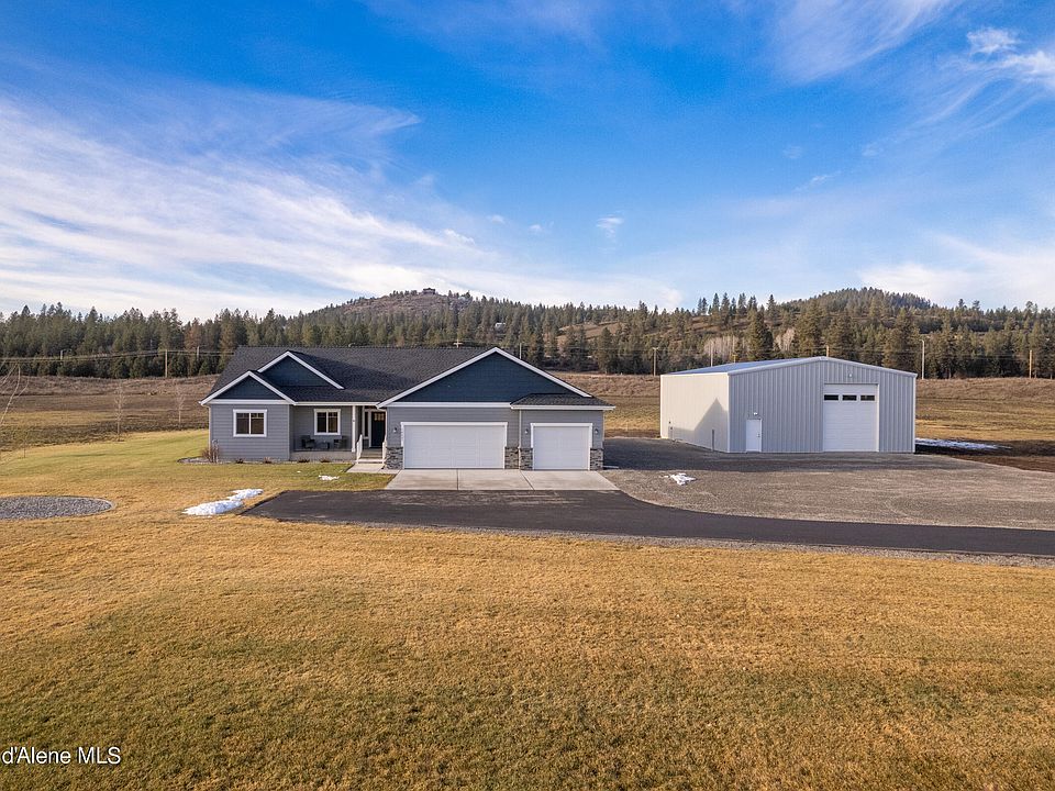What an opportunity to live on acreage so close to town! Garnet Ranch is an outstanding development with quality built homes and NO HOA's. This property is just shy of 5 acres and boasts a 40x50' Steel Commander Shop Building with gas heat 200 amp service to shop and 50 amp rv service, rv septic and two 14' doors with drive through access. Asphalt driveway with concrete apron in front of the 3 car garage. There is an ample amount of gravel around the shop for your parking needs. The yard has sprinklers and landscape through a good portion of the yard. This open concept home features 3 bedrooms and 2 bathrooms. Gas fire place and laminate flooring through out. Don't miss out on this covered patio and beautiful sunsets.