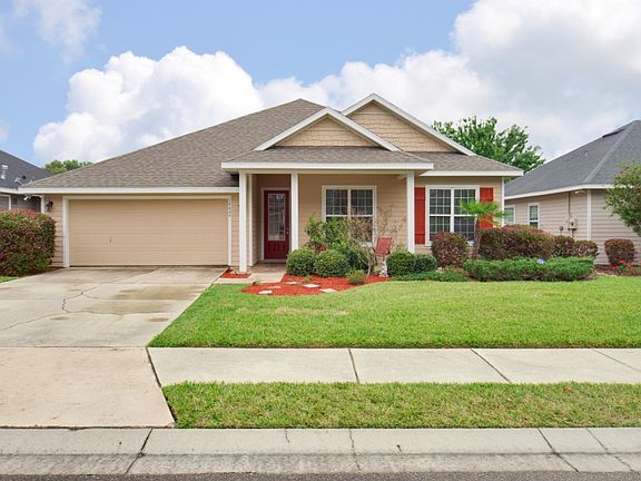 Gorgeous 3BR/2BA turn-key home in the Belmont community! This home features 10 foot ceilings throughout with custom lighting and crown molding. Serene enclosed patio with screen in back, gas fireplace, simulated wood and tile flooring throughout. No carpet! Open concept is perfect for entertaining guests. The Master Suite has a master bath w/jacuzzi tub and shower, a double vanity and an oversized walk-in closet. The Belmont community is close to Gainesville & Jonesville, Meadowbrook Elementary, soccer/tennis fields and convenient to I-75. Community amenities include a playground, pool, dog park, basketball and tennis courts!