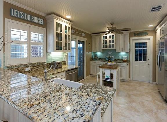Beautiful Remodel Throughout this Condominium Detached Home, Must See! Gorgeous Open Kitchen with newer Cabinetry, Granite Counters, Stainless Steel Kitchenaid Appliances, Rohl Fireclay Country Sink, Brushed Nickel Fixtures, Glass Backsplash and Wainscoting. Custom Beadboard Ceilings in every room including the Garage. Diagonal Tile throughout, Living and Master Bedroom have Vaulted Ceilings. Original lanai removed and Living area Expanded for 1,230 s.f. Under Air + Enclosed Lanai with Paverstone Patio. Both Bathrooms have been updated with Comfort Height Cabinetry, Granite Counters and Tile. Most Windows and Doors have been replaced with Pella. Master Bedroom has a Custom Bay Window. Paverstone Entry Walk, Courtyard and Lanai Walk. Plantation Shutters, Custom Crown Molding and Baseboard plus Upgraded Fans and Lighting. 2 Car Garage has Painted Floor, Lots of Cabinetry and Large Fan. Across the Street from Neighborhood Pool and Mail Boxes. Some Furniture and Furnishings Negotiable.
