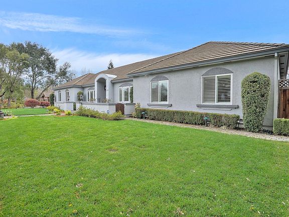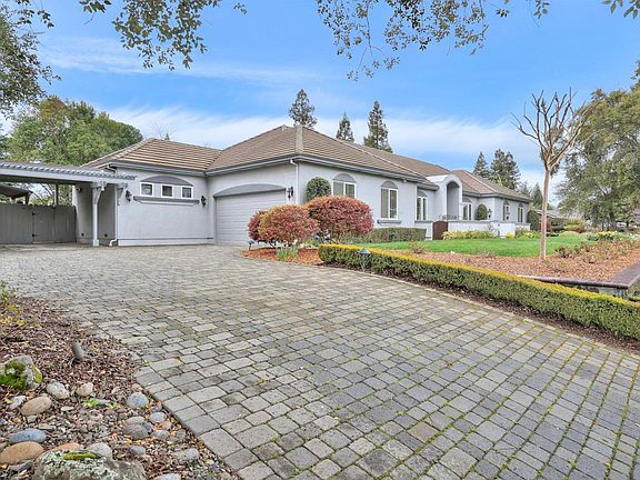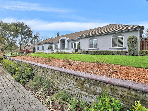 Upscale in every way, this custom French-Country home features two deluxe master suites, wide-plank cherry floors, coffered ceilings, crown molding, and high-end cherry cabinetry throughout its open floorplan. True gourmet kitchen with Thermador range and hood, second built-in Thermador oven with microwave and warming drawer, Gaggenau in-counter steamer, and built-in Miele espresso maker. One master suite features a two-way fireplace, coffered ceiling, private patio, soaking tub and walk-in closet. The second master suite has a barn door entry walk-in closet, oversize easy-access shower and dual vanities with vessel sinks. Meticulous mature landscaping surrounds the home with a lovely covered patio, fruit trees, roses, paver driveway, and room for a pool in back. Too many more upgrades to list here! This level of quality and luxury is rare - but you deserve it!