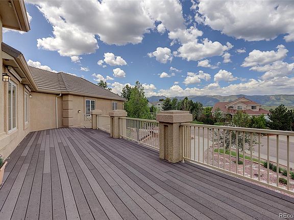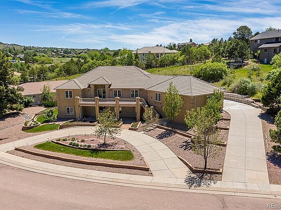 Executive home w/ captivating views of the mountains and Air Force Academy! Enjoy Colorado sunsets over the Front Range from the comfort of your front balcony! This 5286 sq ft raised ranch features TWO driveways: A circular driveway in front, leading into the lower level of the home. 2nd (heat-capable) driveway leading around the side, to the garage! Open floorplan w/ rock-wall fireplace! Beautiful hardwoods on main! Ceramic tile on lower! Plantation shutters! Hideaways in bottoms of custom Alder bookshelves! For the Gourmet Chef- granite counters compliment Brazilian custom cabinetry, SS appliances, both gas range & electric stovetop, built in double ovens, dual sinks, microwave, under-cabinet LED's & more! Gas line hookup on rear deck/patio! Backyard includes turf, terraced retaining walls, raised gardens! Wildlife is a bonus! The home boasts:6 beds/6ba (potential 7beds). Oversized guest suite would be a great workout room! Luxurious owner suite w/ jacuzzi tub & spa shower! Ensuite office study on main, with custom Brazilian cherry cabinetry. Lower level walkout features open concept family/game room, large wet bar w/granite counters, mini fridge, sink, disposal & wine closet - making the perfect place to host holiday gatherings! For the crafter/craftsman/artist- an oversized multipurpose workshop w/ cement flooring, overhead lighting and enlarged doorframe for those DIY projects! Abundant storage rooms w/ unique pocket doors! Hail, wind, fire resistant concrete tile roof. Soffit mounted electrical for holiday lights. Custom Sunsetter screens on west-facing deck windows for energy efficiency. 2 new water heaters w/ warranty. 2 HVAC furnaces. New main level A/C. Whole house water filtration. Ceilings are pre-wired for fans or custom lighting. Pre-wired for built-in aux speakers. ADT wireless security system. Sprinkler system. PRE-INSPECTED! D20 schools! Great layout for the multigen fam with in-laws, or older children that prefer space!
