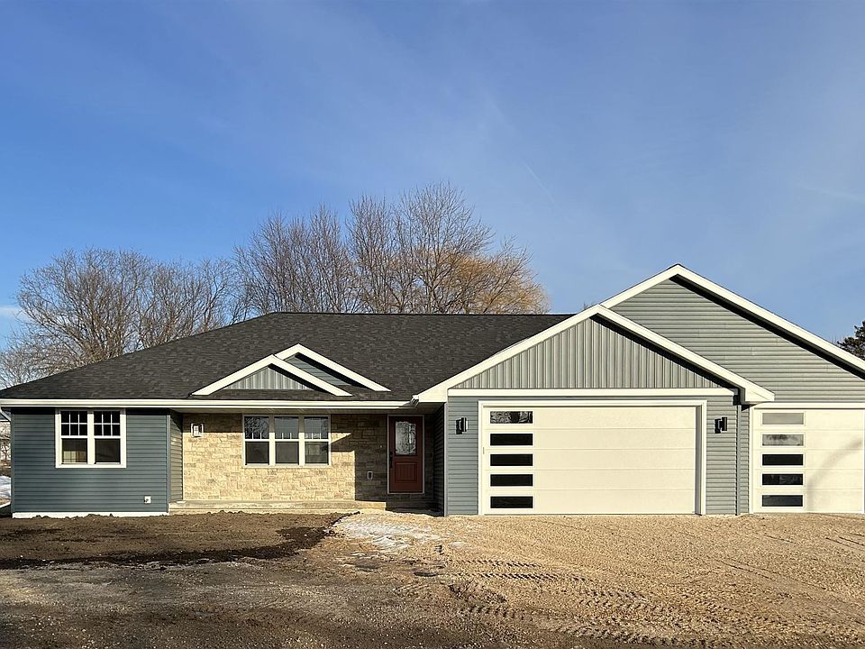 Denmark school district is where you will find this home currently in the building stages and estimated completion date is 2/15/2024. Sprawling 1 story home offering 3 bedrooms, 2 full bathrooms, 1st floor laundry room with counter space. Mud room area offer of 3 stall garage with closet. Split bedroom design with the primary bedroom having a walk in closet, double sinks in the full bathroom. 2 other generous size bedrooms with great closet space. Nice size living room with corner fireplace and open concept to large kitchen offering dishwasher, microwave, pantry and dining area with patio doors. Basement is stubbed for a full bathroom for future expansion along with a convenient egress window. Won't last long check it out today! Buyer is responsible for landscaping, deck or patio.