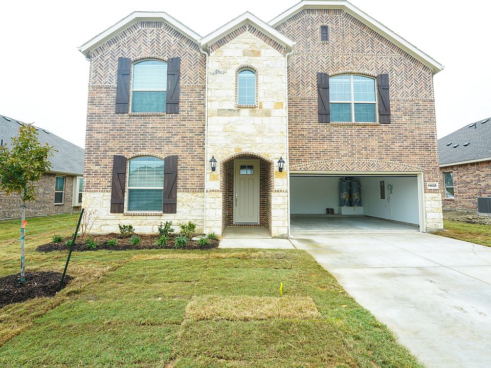 Sendera Ranch SUNSTONE with Media is a 5 bedroom home that boasts two floors of modern living space that makes everyday gathering effortless with a central open concept design with covered patio and soaring ceilings. The owner's suite and walk-in closet enjoys privacy with a flexible study on the first floor as the upper-level enjoys three secondary bedrooms, a breezy game room and media room for endless possibilities. Nearby family-friendly venues like Main Event Arcade, Cinemark Theater and Urban Air Trampoline Park, plus students in the community attend the sought-after Northwest ISD.
