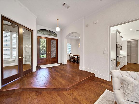 Experience quiet luxury on over an acre in the gated community of Old Mill Lake. Backing to a serene creek and surrounded by towering trees, this home offers the perfect balance of privacy and connection to nature. Inside, an open layout with soaring ceilings and warm wood floors creates inviting spaces for gatherings. The chef’s kitchen with granite counters, island cooktop, and double ovens flows to the family room anchored by a stone fireplace. The first-floor primary suite is a true retreat with its own fireplace and spa-style bath. Upstairs, two additional bedrooms provide comfort for family or guests. Step outside to a covered patio and enjoy peaceful evenings listening to the creek. Community amenities include a private stocked lake for fishing, a playground, and picnic areas -- All just minutes from Magnolia ISD schools, shopping, dining, and FM 1488. Schedule your private tour today!